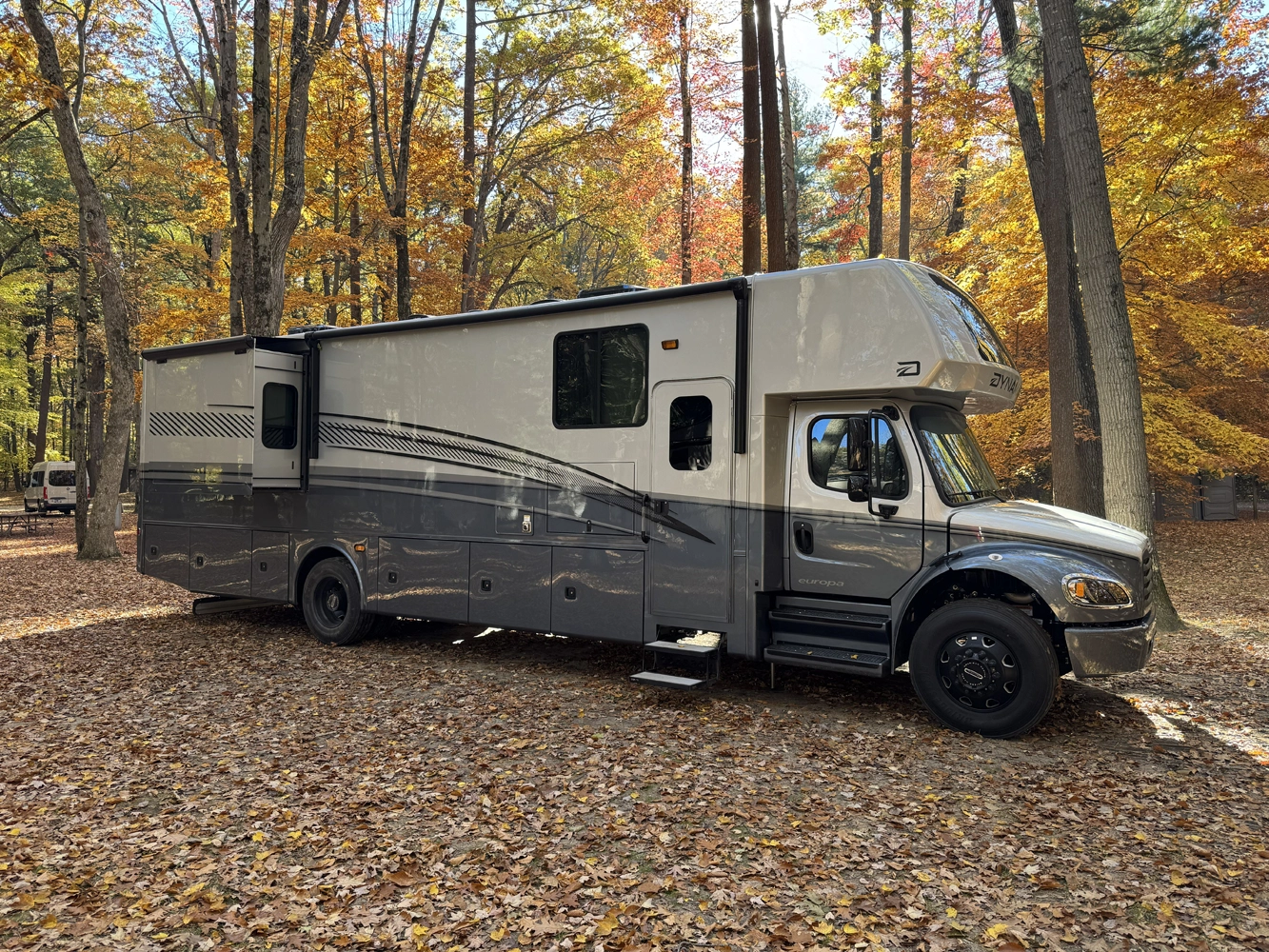 The all-new Europa S is here. Built on the Freightliner S2RV chassis, it’s designed for luxurious, long-distance adventures with its larger Super C floorplans. Get true power from a 6.7L Cummins (360hp / 800 ft-lbs torque) and enjoy a 12,000-lb towing capacity. Plus, a lower cockpit creates a more spacious cab-over bunk. Welcome to the next level of travel.