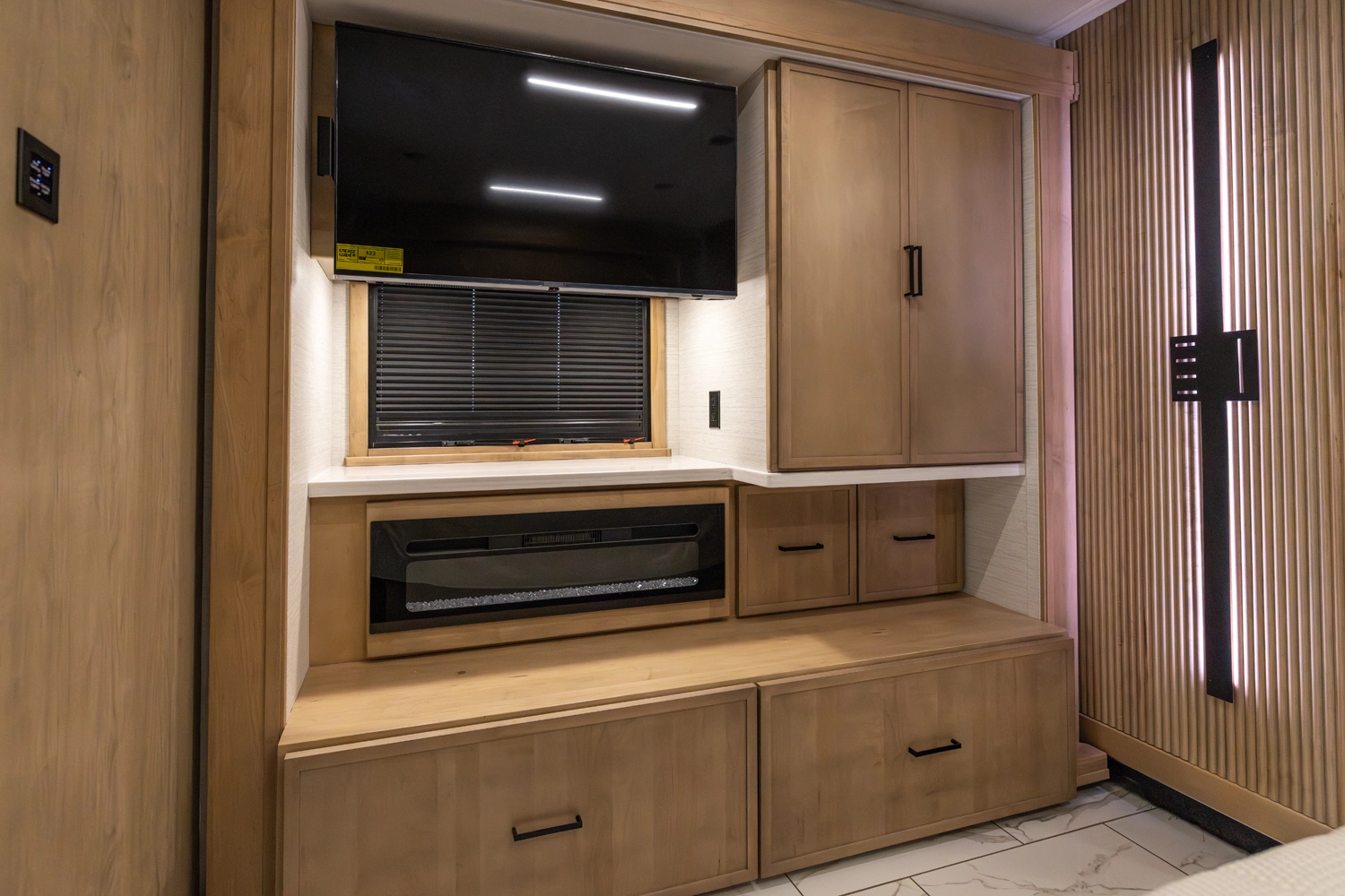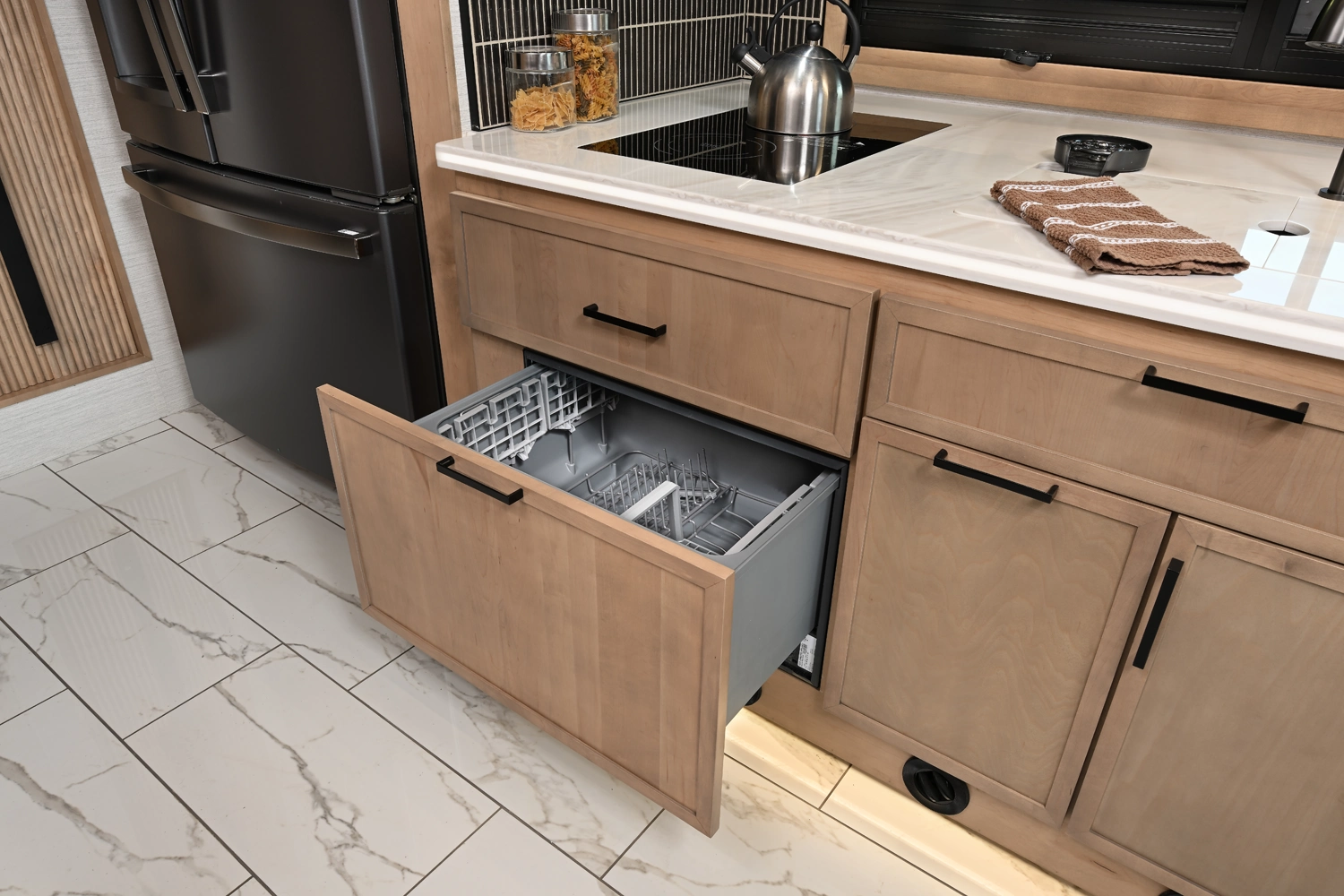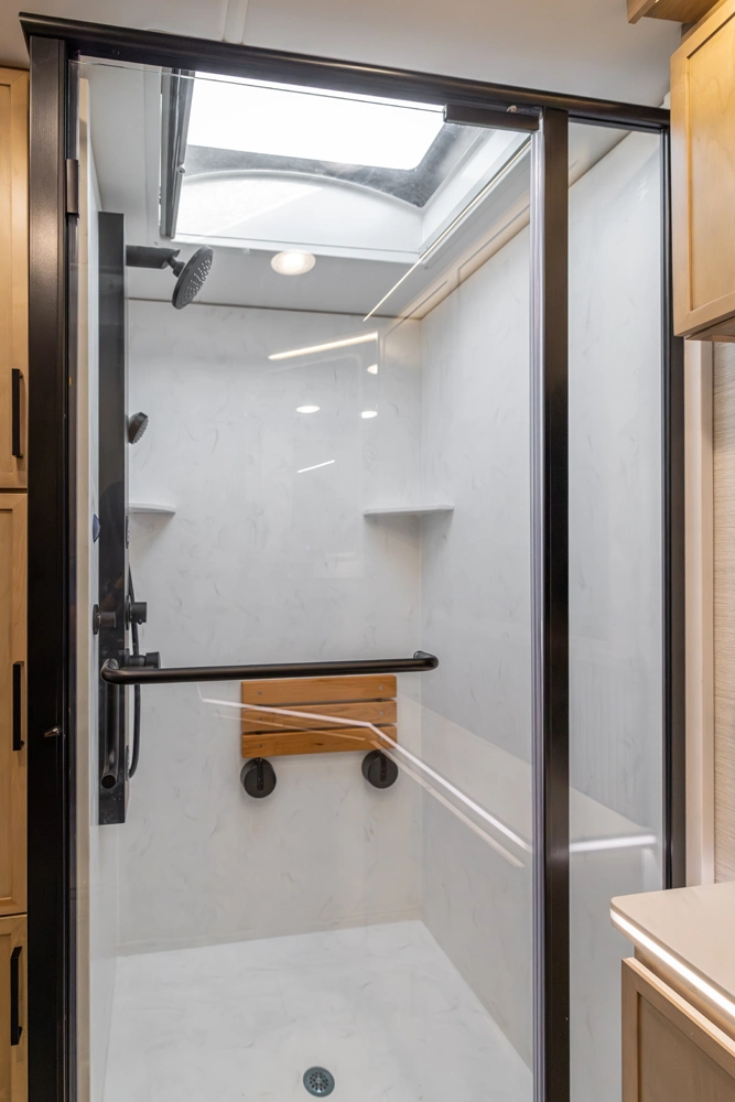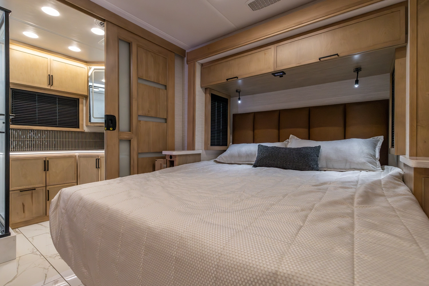 Built on the formidable Freightliner Cascadia 126 chassis and powered by a 600 hp Detroit DD16 engine, the Grand Sport is the most powerful motorhome in the Dynamax Super C lineup. It’s engineered to command the road with 1,850 lb.-ft of torque, a 30,000-lb. towing capacity, and the confidence of the industry-leading Detroit Safety Assurance Package.