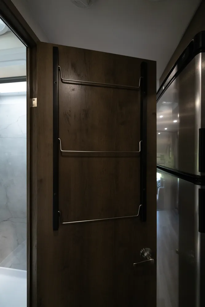 • Entry Door with Rotary Latch; Dark-Tinted, Frameless Window; and Integrated Shade